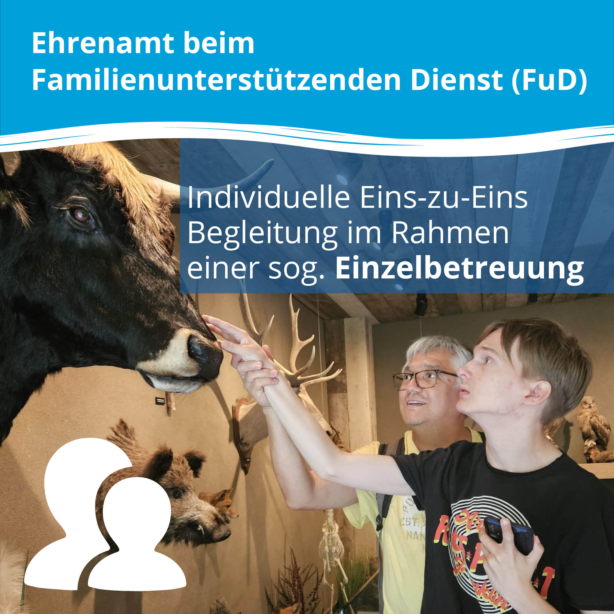 Für den Familienunterstützenden Dienst (FuD) des Lebenshilfe Centers suchen wir sozial engagierte Menschen (m/w/d), die uns ehrenamtlich unterstützen möchten. Durch eine ehrenamtliche Tätigkeit bei uns spendest du Menschen mit Beeinträchtigung wertvolle Zeit, bereicherst deren Alltag und trägst damit gleichzeitig zur Entlastung der Familien bei.